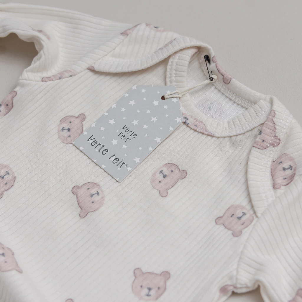 Body de manga larga con cuello americano confeccionado en morley de algodón con lycra, lo que garantiza suavidad y comodidad para la piel sensible de tu pollito.