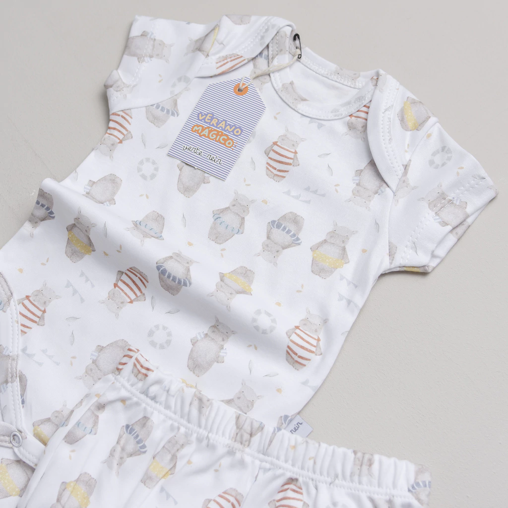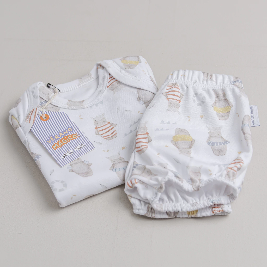 Este nuevo conjunto de algodón pima es un infaltable para los días de calorcito que se vienen! Incluye un body de mangas cortas y un short liviano que garantiza una sensación súper fresca y suave en contacto con la piel delicada del bebé.