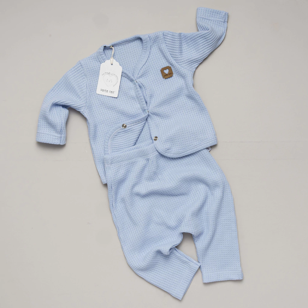 Amamos éstos conjuntitos de medio tiempo, que están confeccionados en panal , con una textura divina, que simula un panalcito de abeja, y es súper acogedora y delicada para armar sus primeras muditas. Ideal para acompañar muditas de algodón y sumarle un abriguito liviano, súper versatil y práctico, en cualquier momento del año.