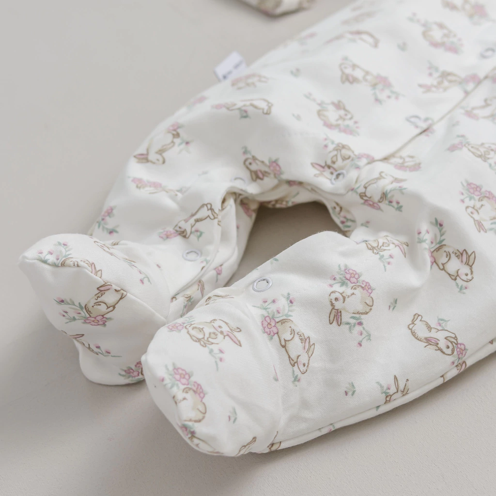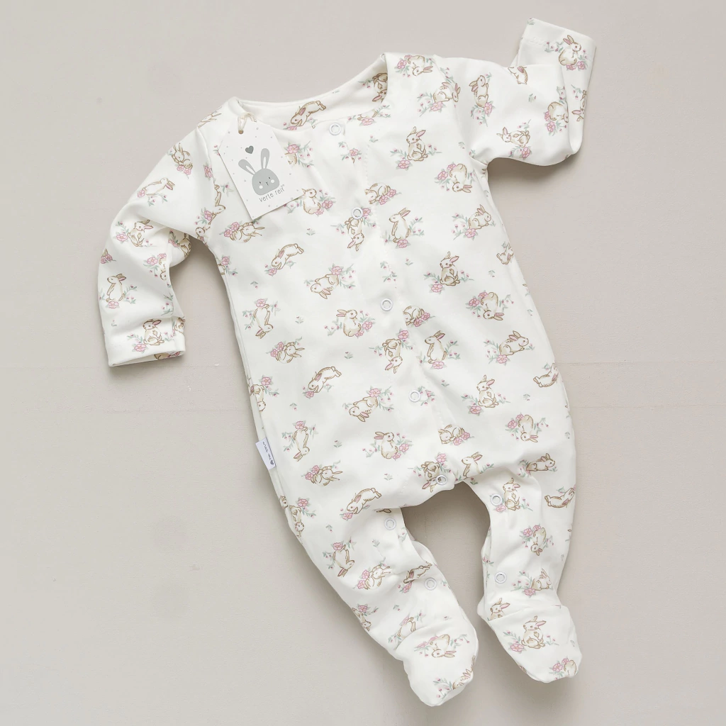 Lo diseñamos con una apertura total frontal, lo que facilita el cambio de ropa sin necesidad de manipular la cabecita de tu bebé. Tiene piecitos y ganchitos al tono, para que se vea aún más lindo.
