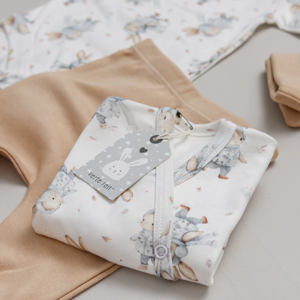 • Material de alta calidad: Todas las piezas están confeccionadas en 100% algodón peinado, proporcionando suavidad y comodidad para la delicada piel del bebé.