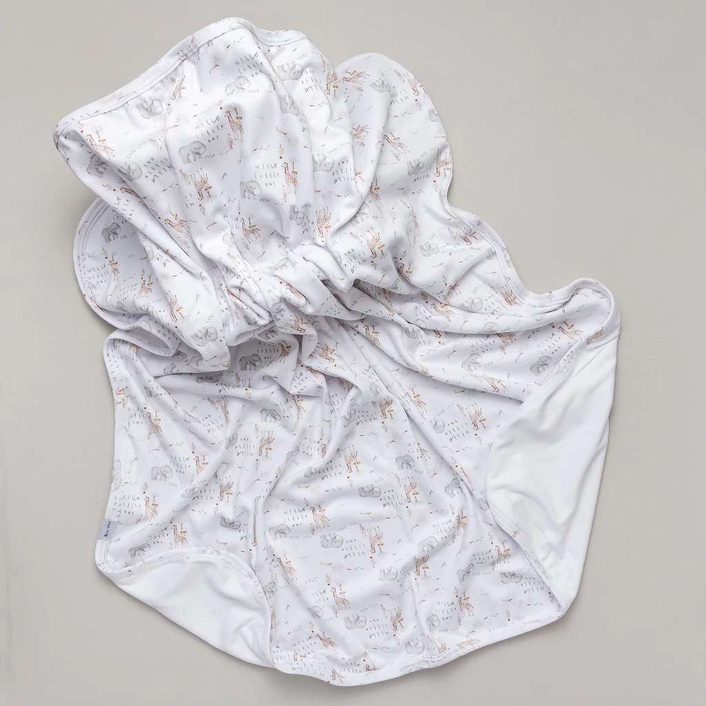 Esta manta es el complemento ideal para sumar al ajuar de saquito y babucha en la misma estampa, creando un set de recibimiento armonioso y de calidad. Gracias a la nobleza del algodón Pima, garantiza una suavidad inigualable y un abrigo seguro para la delicada piel de tu bebé.