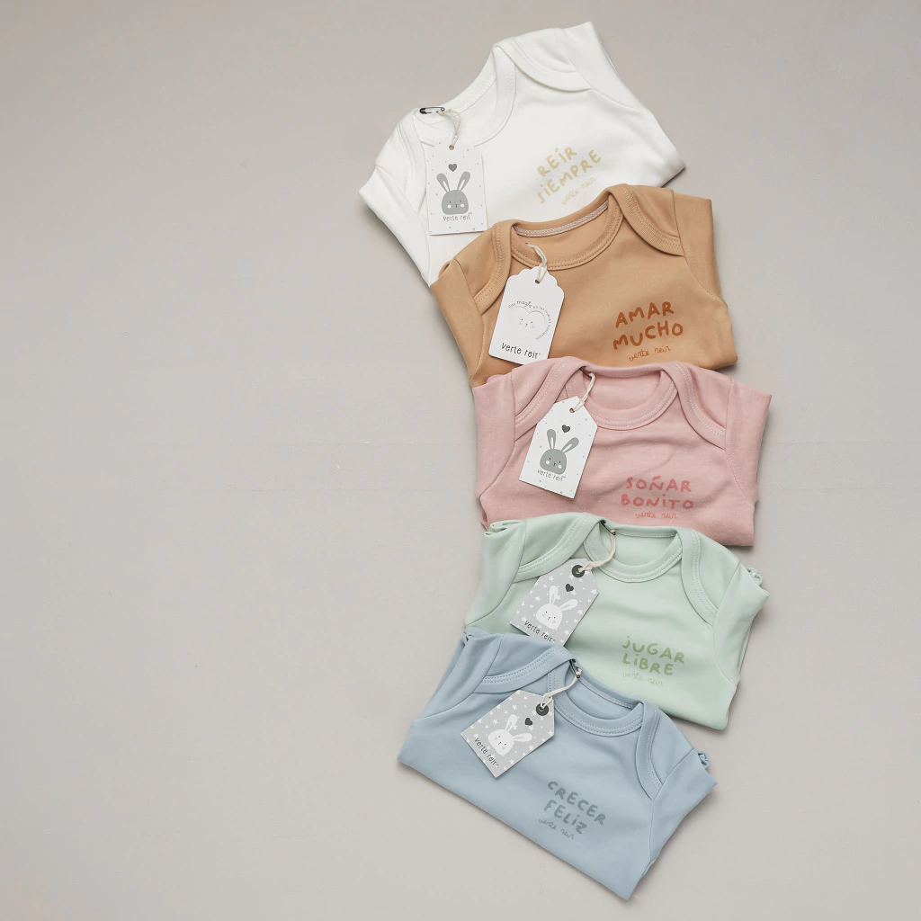 Nuestro body "Jugar libre" forma parte de la exclusiva cápsula "Mini mensajitos", pensada para acompañar los primeros momentos de tu peque.